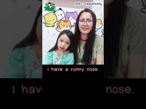 Hello my name is google. สวัสดีค่ะ วันนี้แม่กุ้งนะคะเดี๋ยววันนี้เราจะมีประโยคภาษาอังกฤษ มาคุยกับลูกกันนะคะ I will say it in Thai and you say it in English. The first one. หนูป่วยค่ะ I’m sick. หนูปวดหัว I have a headache. หนูมีน้ำมูก I have a runny nose. หนูต้องกินยา I have to eat. NO! I have to take medicine. หนูต้องกินข้าวเยอะๆ I have to eat rice a lot. หนูต้องกินน้ำเยอะๆ I have to drink a lot of water. หนูต้องนอนเยอะๆด้วย I have to sleep a lot. แล้วหนูก็จะหายเร็ว I’ll be better very soon. Bye bye เด็กสองภาษาพ่อ แม่ไม่เก่งก็ทำได้นะคะ